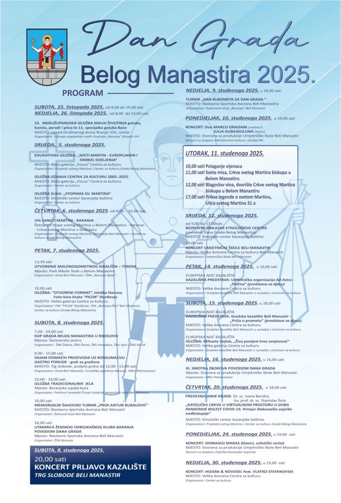 Bogat program kulturnih, znanstvenih i sportskih događanja uz obilježavanje Dana grada Belog Manstira očekuje vas sve do kraja mjeseca studenog.