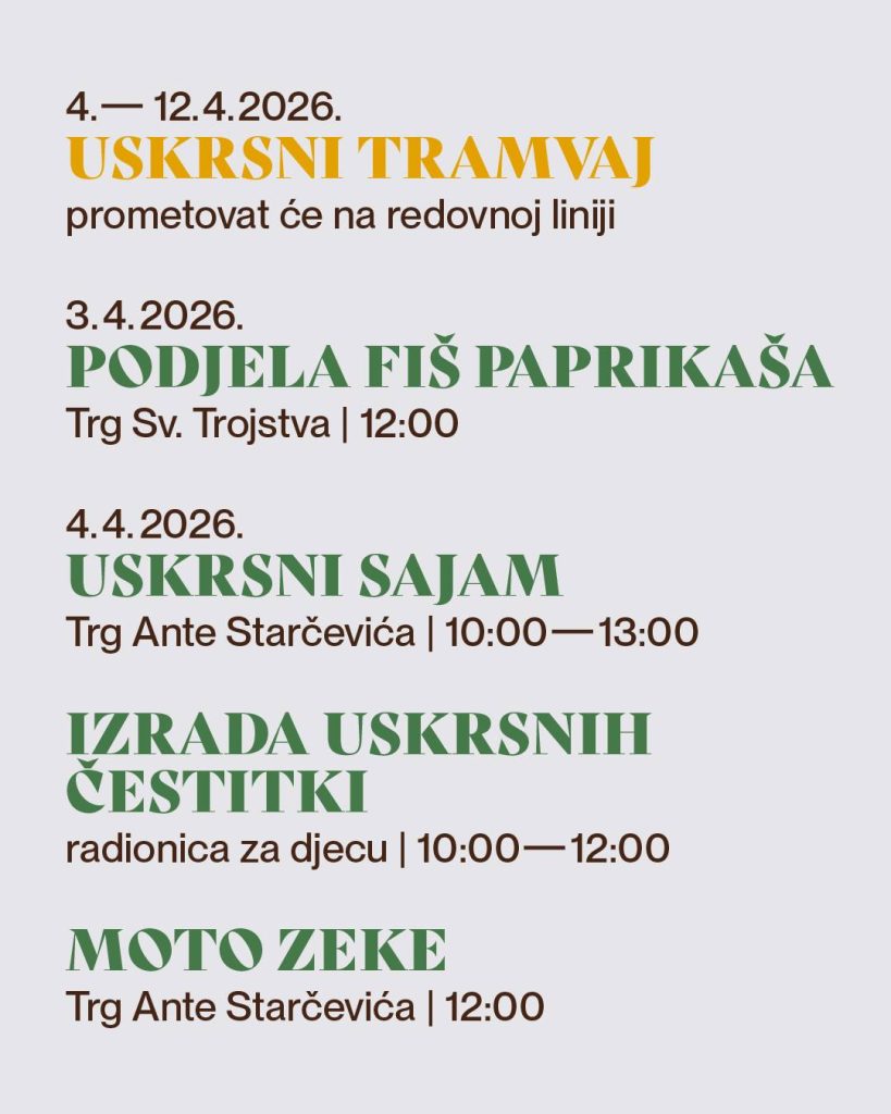 Uoči i nakon blagdana Uskrsa i ove 2026. godine sve građane i turiste u Osijeku očekuje bogat tradicijski program za sve uzraste: