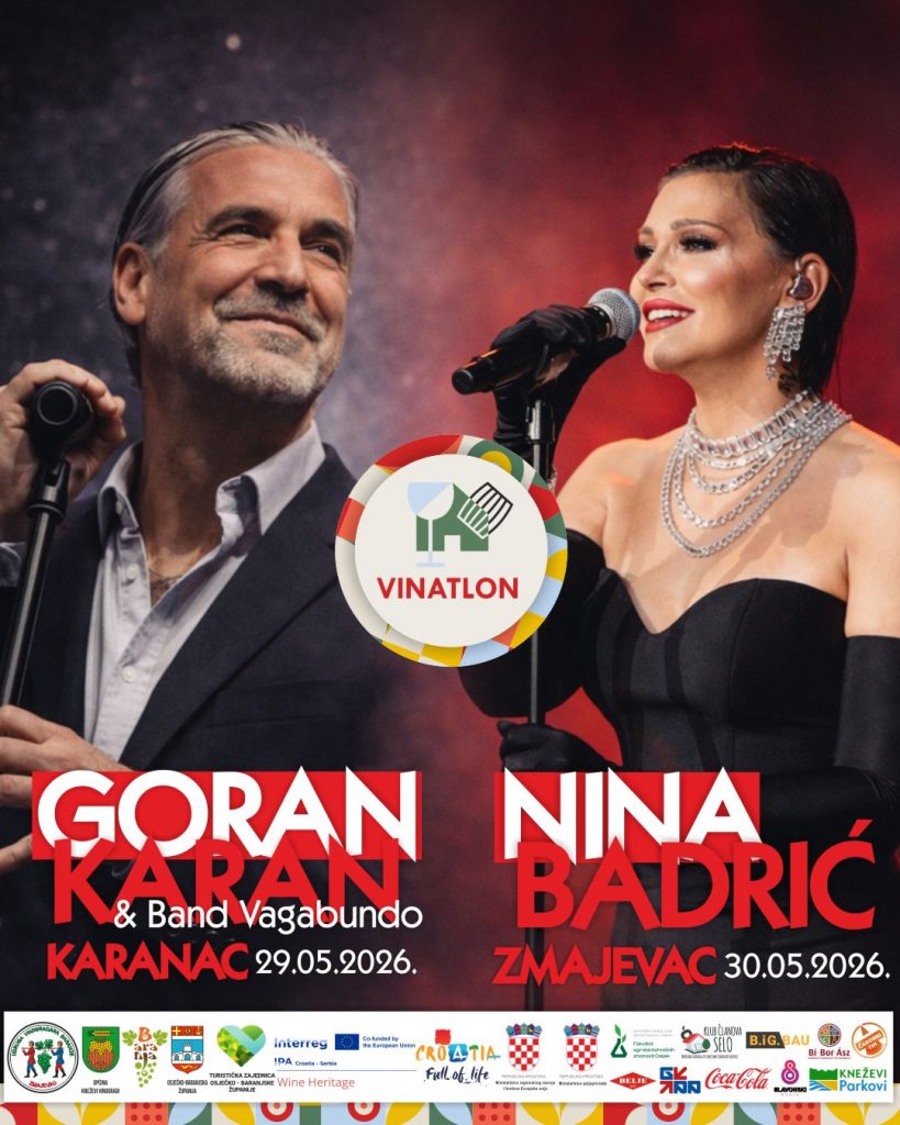 U petak 29. i subotu 30. svibnja, u organizaciji Udruge vinogradara Baranje Zmajevac uz podršku brojnih institucija i partnera, i ove godine Baranja ponovno postaje najpoželjnija vinska destinacija kontinentalne Hrvatske, a Vinatlon 2026. donosi spoj vrhunske enologije, autentičnog baranjskog prostora, odlične atmosfere i programa koji okuplja ljubitelje vina, hedoniste, izletnike i sve one koji traže dobar razlog za bijeg u prirodu.